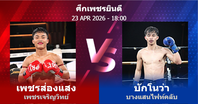 23/04/2026 18:00 ศึกเพชรยินดี เพชรส่องแสง เพชรเจริญวิทย์ บักโนว่า บางแสนไฟท์คลับ