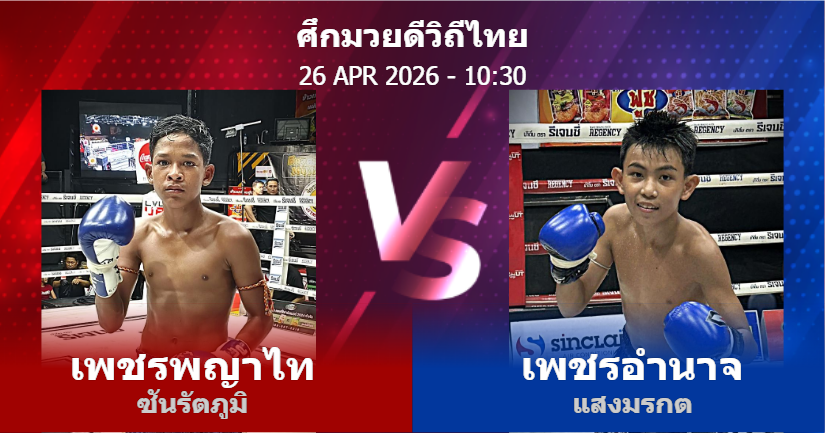 26/04/2026 10:30 ศึกมวยดีวิถีไทย เพชรพญาไท ซันรัตภูมิ เพชรอำนาจ แสงมรกต