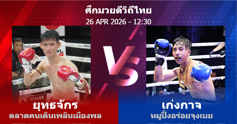 26/04/2026 12:30 ศึกมวยดีวิถีไทย ช่วงที่ 2 ยุทธจักร ตลาดคนเดินเพลินเมืองพล เก่งกาจ หมูปิ้งอร่อยจุงเบย