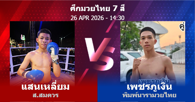 26/04/2026 14:30 ศึกมวยไทย 7 สี แสนเหลี่ยม ส.สมควร เพชรภูเงิน พิมพ์นารามวยไทย