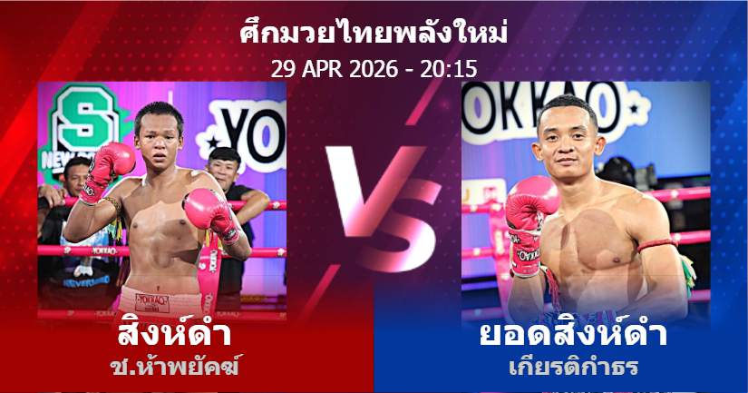 29/04/2026 20:15 ศึกมวยไทยพลังใหม่ ช่วงที่ 2 สิงห์ดำ ช.ห้าพยัคฆ์ ยอดสิงห์ดำ เกียรติกำธร