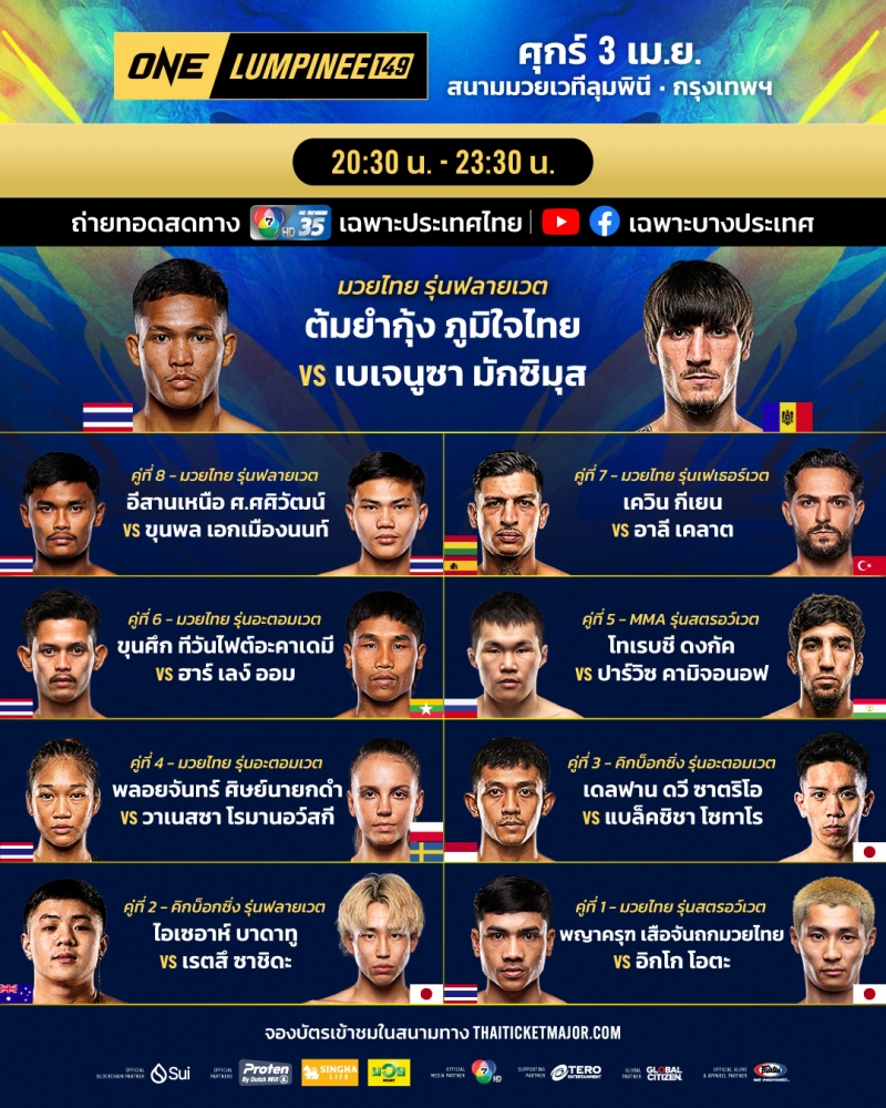 14 คู่ผ่านตาชั่งพร้อมลุยศึก ONE ลุมพินี 149
