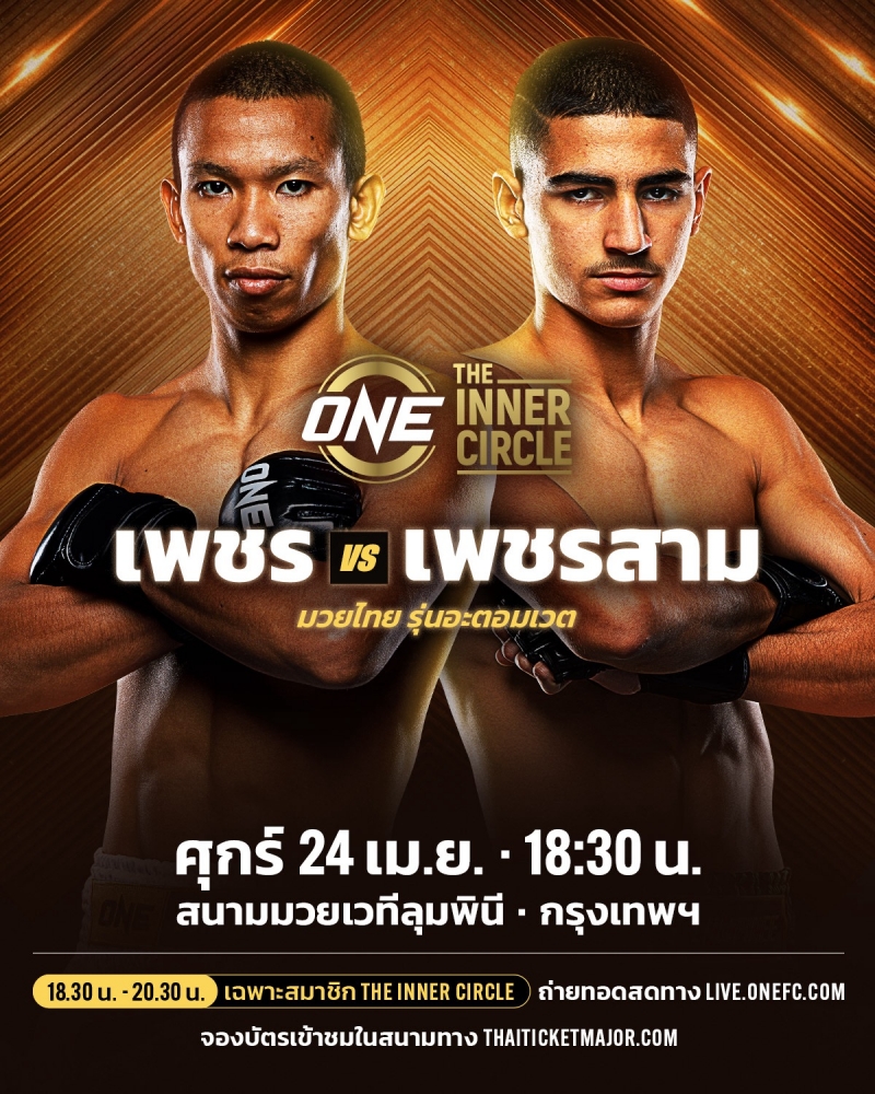 ระเบิดความมันระดับห้าดาวบนสังเวียนศักดิ์สิทธิ์สนามมวยเวทีลุมพินี เมื่อรายการ The Inner Circle ประจำวันศุกร์ที่ 24 เมษายนนี้ เตรียมจับสองนักชกดาวรุ่งฟอร์มร้อนแรงมาพิสูจน์ฝีมือเพื่อล่าความฝันสู่การคว้าสัญญา ONE โดยเป็นการพบกันในกติกามวยไทย รุ่นอะตอมเวต ระหว่าง เพชร สวนหลวงรถยก จอมบู๊วัย 19 ปีจากขอนแก่น ที่พกความมั่นใจมาเต็มเปี่ยมหลังเพิ่งหักปากกาเซียนเอาชนะหนุ่มสุรินทร์ ช.เกตุวีณา มาได้ในไฟต์ล่าสุด เตรียมประจันหน้ากับ เพชรสาม หรือ นาห์ยัน โมฮัมเหม็ด นักชกเลือดเดือดวัย 17 ปี ลูกครึ่งฝรั่งเศส-แอลจีเรีย ผู้ชนะใจแฟนมวยด้วยลีลาเดินบู๊ไม่หยุดและทักษะการพูดภาษาไทยที่ยอดเยี่ยม แม้ทั้งคู่จะเคยผ่านบททดสอบที่ยากลำบากมาในปีก่อน แต่การกลับมาครั้งนี้คือเดิมพันครั้งสำคัญเพื่อขยับขึ้นสู่กลุ่มหัวแถวของรุ่น โดยแฟนมวยสามารถเกาะติดการปะทะกันของคู่นี้ผ่านการถ่ายทอดสดเฉพาะสมาชิกทาง LIVE.ONEFC.com ตั้งแต่เวลา 18 นาฬิกา 30 นาทีเป็นต้นไป