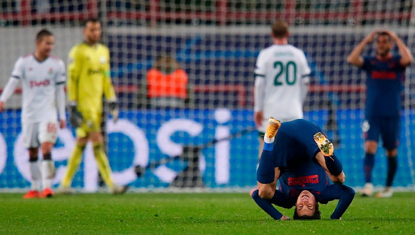 โอกาสยังเป็นของ แอตเลติโก ต่อ นาทีที่ 65 ทริปเปียร์ เปิดจากฝั่งขวาเข้าเขตโทษมาให้ ชูเอา เฟลิกซ์ เทกตัวขึ้นโหม่งกำลังจะเสียบใต้คาน แต่ กีลแยร์เม่ ก็บินเซฟออกหลังไปได้อีกครั้ง