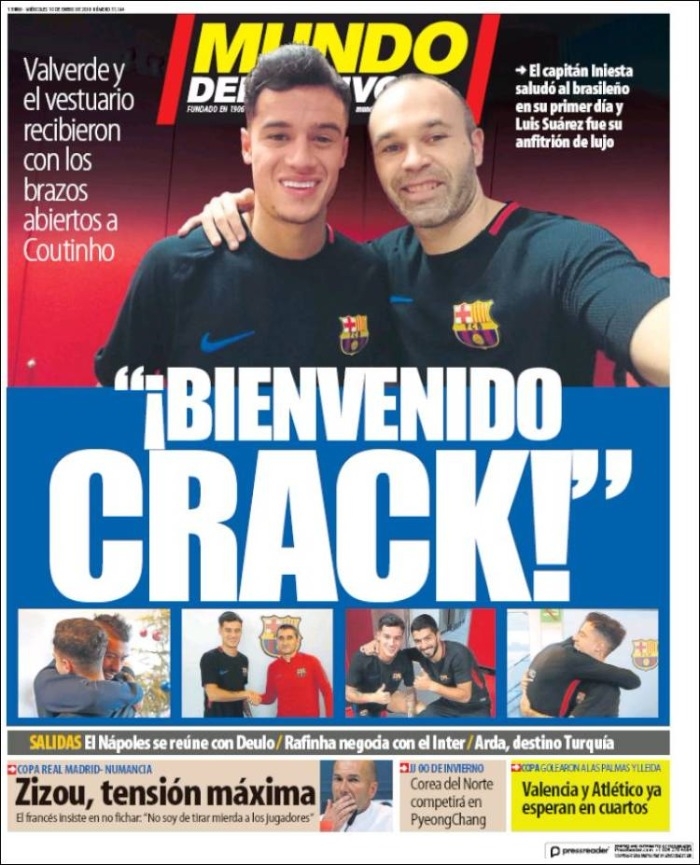 มุนโด เดปอร์ติโบ ยกให้เรื่องต้อนรับ คูตินโญ่ เป็นประเด็นเด่น