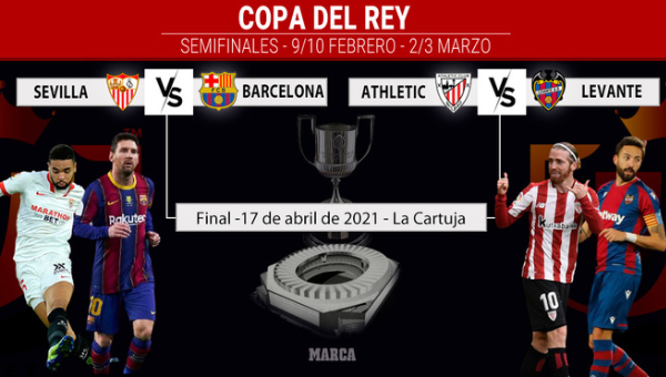 สหพันธ์ฟุตบอลสเปนจับสลากประกบคู่ชนรอบรองชนะเลิศของศึก โกปา เดล เรย์ เมื่อวันศุกร์ที่ผ่านมา ปรากฎว่าสองตัวเต็ง บาร์เซโลน่า กับ เซบีย่า โคจรมาเผชิญหน้ากันในรอบตัดเลือก ส่วนอีกคู่เป็นการพบกันระหว่าง เลบันเต้ กับ แอธเลติก บิลเบา ตามรายงานจากมาร์ก้า