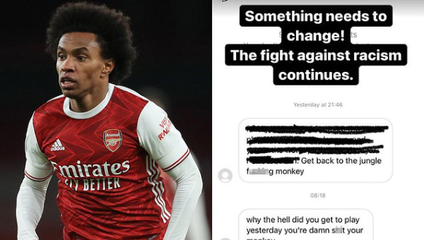 วิลเลี่ยน ปีกจอมเก๋าชาวบราซิเลียนของ อาร์เซน่อล เจอแฟนบอลไร้หัวคิดเล่นงานจนได้หลังส่งข้อความเหยียดผิวผ่านทางอินสตาแกรม