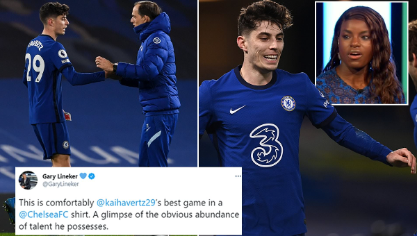ด้าน ลินิเกอร์ ทวีตผ่านบัญชี @GaryLineker ว่า “ ไค ฮาแวร์ตซ์ เล่นวันนี้ดูสบายใจ เป็นเกมที่ดีสุดใต้สีเสื้อ เชลซี ดูทรงแล้วกระบวนการเพาะบ่มฝีเท้ากำลังรอปล่อยของอีกเพียบ”