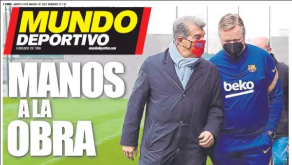 มุนโด เดปอร์ตีโบ รายงานว่า โจน ลาปอร์ต้า ประธานสโมสรคนใหม่ของ บาร์เซโลน่า ได้หารือกับเทรนเนอร์ โรนัลด์ คูมัน แล้วเรื่องแผนการเสริมทัพ โดยเตรียมพร้อมแย่งตัว อเกวโร่ กับ การ์เซีย ที่กำลังจะหมดสัญญากับ แมนเชสเตอร์ ซิตี้ และ อลาบา ที่อำลา บาเยิร์น หลังจบซีซั่นนี้