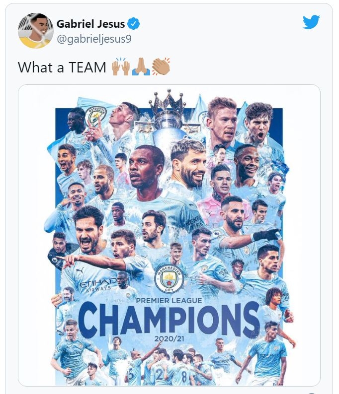 ขณะที่ผู้เล่นคนอื่นในทีมก็ร่วมฉลองผ่านสื่อสังคมออนไลน์เช่นกันไม่ว่าจะเป็น ฟิล โฟเด้น, ไคล์ วอล์คเกอร์, แฟร์นันดินโญ่, กาเบรียล เชซุส ฯลฯ