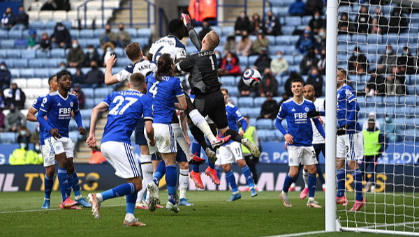 ขยับมานนาทีที่ 41 สเปอร์ส ได้ลูกเตะมุมก่อนเปิดเข้ามาโดย ซน ฮึง-มิน เข้ามาในพื้นที่อันตรายของเจ้าถิ่น และชกออกมาโดย แคสเปอร์ ชไมเคิ่ล มาเข้าทาง แฮรี่ เคน จับก่อนหนึ่งจังหวะก่อนที่จะซัดด้วยขวาเข้าประตูไป ทีมจากลอนดอนเหนือ ไล่มาเป็น 1-1