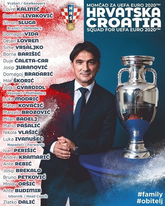 รายชื่อ 26 ผู้เล่นทีมชาติโครเอเชีย ชุดยูโร 2020