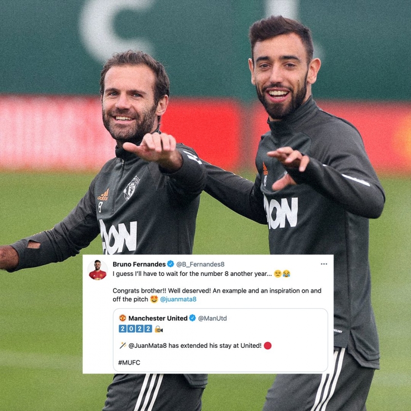 บรูโน่ แฟร์นันด์ส กองกลาง แมนเชสเตอร์ ยูไนเต็ด ต้องรอหมายเลข 8 อีกอย่างน้อยหนึ่งฤดูกาล หลัง ฆวน มาต้า ต่อสัญญาค้าแข้งกับทีมในฤดูกาลหน้า
