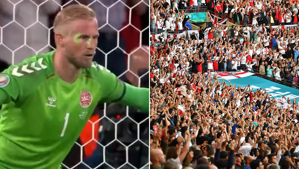 3). มีแฟนบอล ใช้เลเซอร์รบกวน แคสเปอร์ ขไมเคิ่ล นายทวาร ‘เดนส์’ ก่อนป้องกันจุดโทษของ แฮร์รี่ เคน