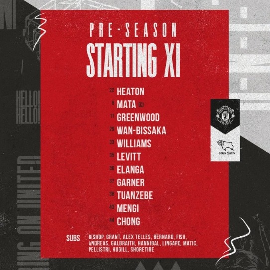 โอเล่ กุนนาร์ โซลชา เฮดโค้ช แมนเชสเตอร์ ยูไนเต็ด ให้โอกาสดาวรุ่งลงสนามเพียบ โดยมี ฆวน มาต้า สวมปลอกแขนกัปตันทีมเกมอุ่นเครื่องปรีซีซั่นนัดแรก