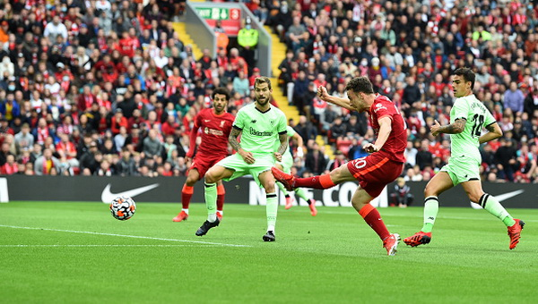 แต่นาทีถัดมา หงส์แดง ก็ขึ้นนำ 1-0 จากความผิดพลาดกันเองของ แอธ. บิลเบา ในจังเตะเปิดเกมสั้น นาบี เกอิต้า ตัดได้แล้วไหลให้ มาเน่ ป้ายต่อเข้าเขตโทษด้านซ้ายให้ ดีโอโก้ โชต้า สปีดตามไปซัดด้วยเท้าซ้ายมุมแคบเข้าประตูไป