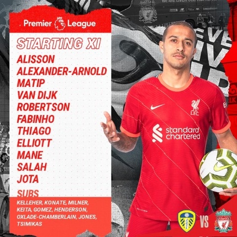 ลิเวอร์พูล ปรับทัพสองจุดจากนัดก่อน ดีโอโก้ โชต้า กับ ติอาโก้ อัลกันตาร่า ได้โอกาสลงตัวจริงในเกมเยือน ลีดส์ ยูไนเต็ด พรีเมียร์ลีกคู่เดียวของวันอาทิตย์