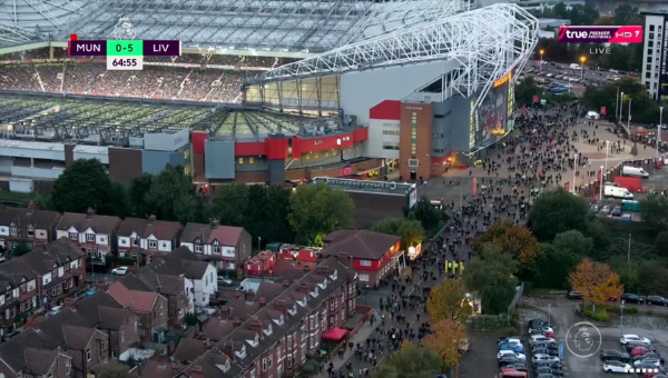 หลังเป็นรองทั้งสกอร์และตัวผู้เล่น กล้องถ่ายทอดสดตัดภาพไปมุมสูงนอกสนามโอลด์ แทร็ฟฟอร์ด ที่ได้เห็นแฟนผีจำนวนมากเดินออกจากสนามกลับบ้านหลังทีมรักหมดลุ้นแม้การแข่งขันจะเหลืออีกร่วมครึ่งชั่วโมงก็ตาม