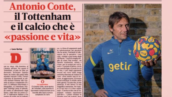 อันโตนิโอ คอนเต้ เฮดโค้ช ท็อตแน่ม ฮอตสเปอร์ ให้สัมภาษณ์สื่อฯอิตาเลี่ยนถึงการทำงานในเล้าไก่เดือยทองว่าต้องให้เวลาเพาะบ่มสักระยะเสียก่อน ส่วนความสนิทสนมกับประธานสโมสรจอมล้วงลูกอย่าง แดเนี่ยล เลวี่ นั้นเป็นไปแบบมืออาชีพ