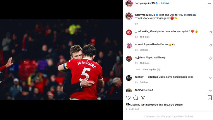 “อ้อมกอดนี้เพื่อคุณ คาร์ริค ขอบคุณสำหรับทุกสิ่งทุกอย่างพี่ตำนาน” ไอจีบัญชี @harrymaguire93