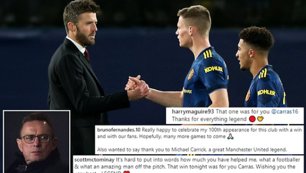 สมาชิกสโมสร แมนฯ ยูไนเต็ด ทั้งนักเตะชุดปัจจุบันหรืออดีตแข้งอย่าง แกรี่ เนวิลล์ ต่างใช้โซเชียล มีเดียโพสต์ขอบคุณ ไมเคิ่ล คาร์ริค รักษาการผจก.ทีมที่ก้าวลงจากตำแหน่งหลังจบเกมชนะ อาร์เซน่อล 3-2 วานนี้เพื่อเปิดทางแก่คณะ ราล์ฟ รังนิก สานต่อจนจบซีซั่น