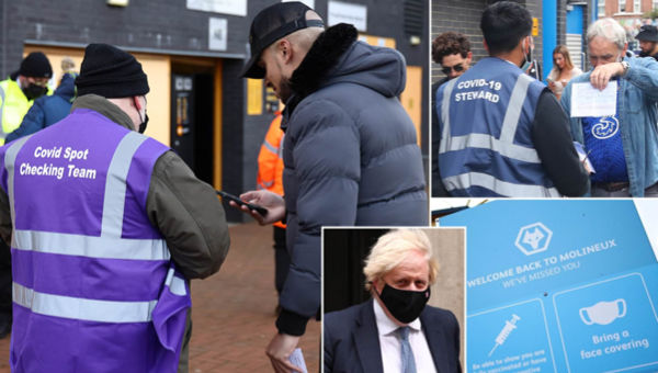 จำเพาะที่พรีเมียร์ลีก อังกฤษ มีคำสั่งให้กองเชียร์ที่จะเข้าสนามของทั้ง 20 สโมสร จำเป็นต้องแสดงหลักฐานจากแอพลิเคชั่นของระบบบริการสุขภาพแห่งชาติ (เอ็นเอชเอส) ว่ารับวัคซีนครบโดสแล้ว