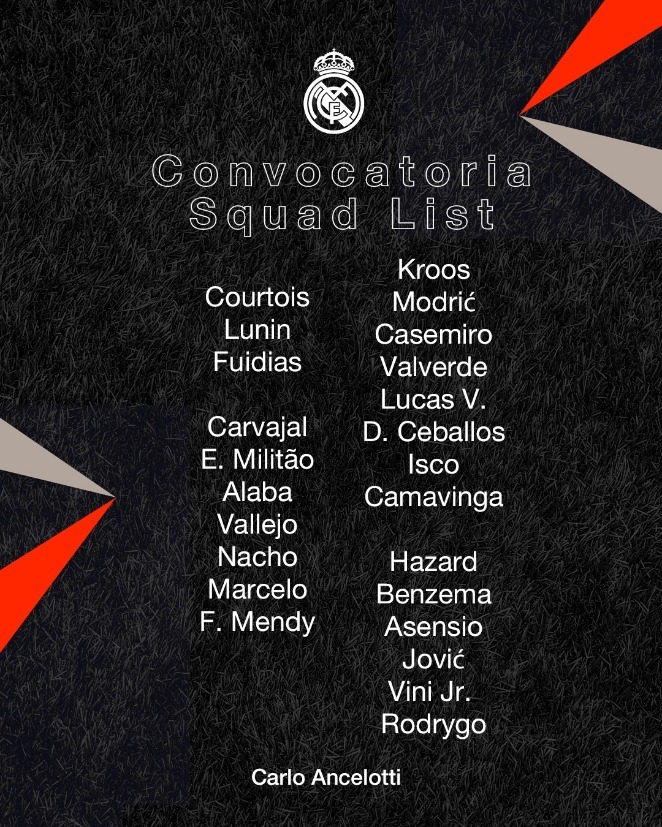 อย่างไรก็ตาม 'อันเช่' มีข่าวดีเพราะในรายชื่อได้ใส่ ลูก้า โยวิช กับ ดาเนียล การ์บาฆาล เข้ามาด้วยหลังจากทั้งสองรายสลัดอาการบาดเจ็บพร้อมเป็นตัวเลือก