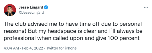 "สโมสรแนะนำให้ผมหยุดพักเพราะเหตุผลส่วนตัว! แต่ในหัวของผมไม่ได้คิดอะไรเลย และผมจะทำตัวเป็นมืออาชีพอยู่เสมอในตอนที่ถูกเรียกใช้งานและทุ่มเทเต็ม 100 เปอร์เซนต์"