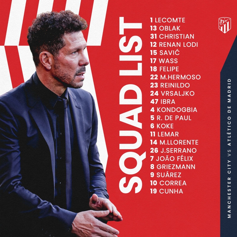 รายชื่อผู้เล่น แอต.มาดริด ชุดเยือน แมนฯ ซิตี้