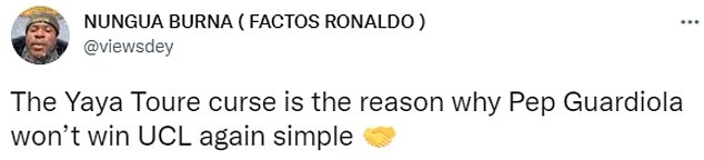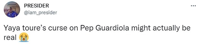 ปิดท้ายกับ @iam_presider ว่า “คำสาปจาก ยาย่า ตูเร่ ถึง เป๊ป กวาร์ดิโอล่า ทำท่าจะกลายเป็นจริงแล้ว”
