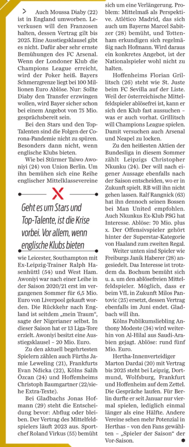 รายงานจาก ‘สปอร์ต บิลด์’ สื่อดังเยอรมนีว่า ‘ปืนใหญ่’ กำลังจับตามองสถานการณ์ของกองกลางวัย 26 ปีที่ตอนนี้เหลือสัญญาในถิ่นพรีซีโร่ อารีน่า สิ้นมิ.ย.เท่านั้น