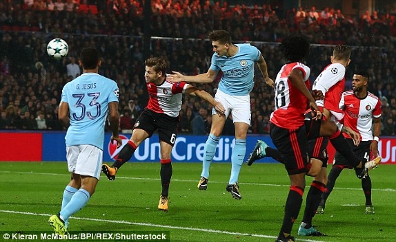 จอห์น สโตนส์ โขกสองประตูพาทีมเรือใบบุกชนะ เฟเยนูร์ด ถึงฮอลแลนด์ 4-0 เก็บสามแต้มมานอนกอดตามคาด