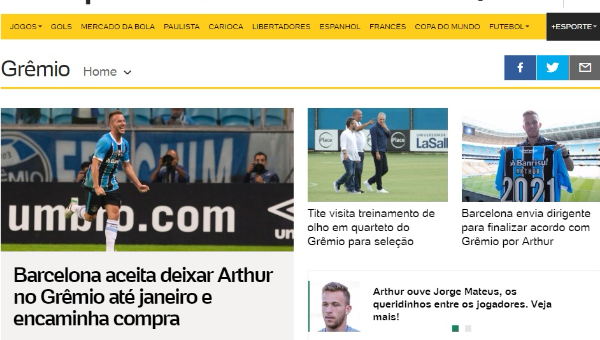 รายงานจากสื่อมวลชนในประเทศ บราซิล ว่าสโมสร บาร์เซโลน่า สามารถตกลงล่วงหน้าคว้าตัว อาร์เธอร์ เมโล่ กองกลางตัวเก่ง เกรมิโอ เป็นที่เรียบร้อย