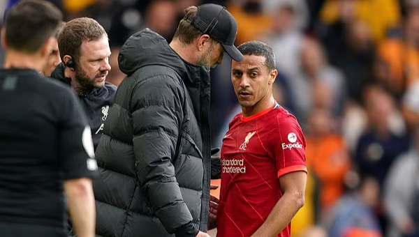 ติอาโก้ บาดเจ็บถูกเปลี่ยนตัวออกจากสนามในช่วงพักครึ่งของเกมสุดท้ายพรีเมียร์ลีกฤดูกาล 2021-22 ที่ ลิเวอร์พูล เปิดรัง แอนฟิลด์ ชนะ วูลฟ์แฮมป์ตัน วันเดอเรอร์ส 3-1 เมื่อวันอาทิตย์ที่ผ่านมา