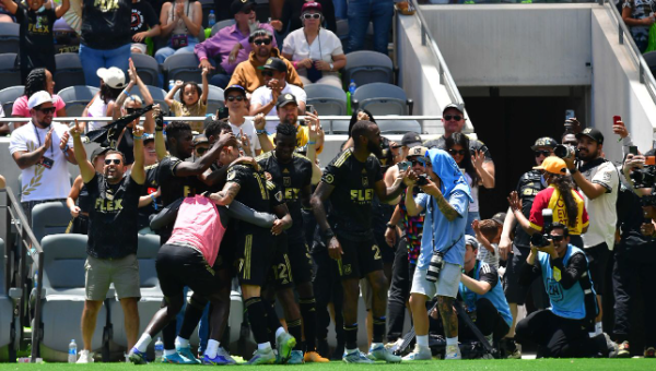 เกมที่ แอลเอเอฟซี เปิดบ้านทุบ นิวยอร์ค เร้ด บูลล์ส 2-0 เมื่อวันอาทิตย์ที่ผ่านมามี คิลียัน เอ็มบั๊ปเป้ กองหน้าดาวดังของ ปารีส แซงต์ แชร์กแมง เป็นหนึ่งในผู้ชมบนอัฒจันทร์