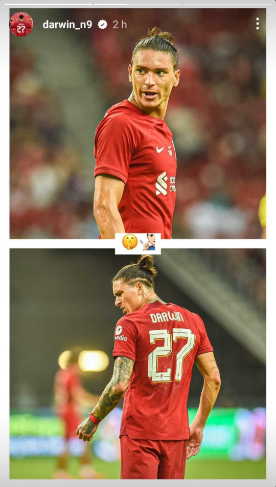 ดาร์วิน นูนเญซ กองหน้าตัวใหม่ของ ลิเวอร์พูล โพสต์อินสตาแกรมส่วนตัวหลังจากที่โดนวิจารณ์ผลงานจากเกมที่ชนะ คริสตัล พาเลซ 2-0 นัดกระชับมิตรที่สิงคโปร์