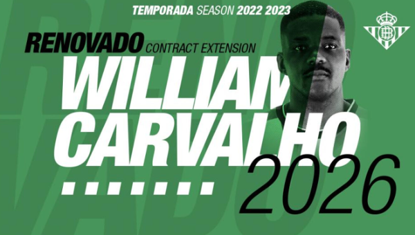 เรอัล เบติส ขยายสัญญากับ วิลเลียม คาร์วัลโญ่ มิดฟิลด์ทีมชาติโปรตุเกสไปจนถึงปี 2026 แทนข้อตกลงเดิมที่กำลังจะสิ้นสุดในวันที่ 30 มิถุนายน 2023 ตามรายงานจากมาร์ก้าเมื่อวันศุกร์ที่ผ่านมา