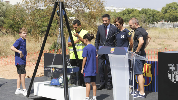 โจเซป มาเรีย บาร์โตเมว พร้อมด้วย อันเดรส อีเนียสต้า กับ ดานี ครัฟฟ์ เดินทางมาร่วมวางศิลาฤกษ์ก่อสร้างสนาม โยฮัน ครัฟฟ์ สเตเดี้ยม