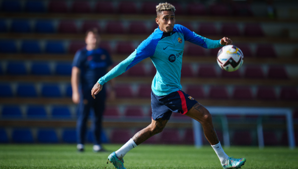 ราฟินญ่า แนวรุกชาวบราซิเลียนของ บาร์เซโลน่า ระหว่างการฝึกซ้อมก่อนหน้าเกมเยือน บาเลนเซีย บนเวทีลีกาวันเสาร์นี้