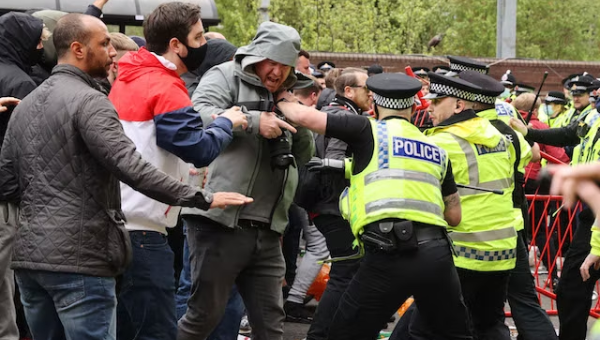 แฟนบอล "ปีศาจแดง" รวมตัวกันประท้วงที่หน้าสนาม รวมถึงการบุกเข้าไปในสนามจนทำให้เกมที่จะพบกับ ลิเวอร์พูล ต้องถูกยกเลิกไป ซึ่งเหตุการณ์ครั้งนี้แฟนบอลมีการปะทะกับเจ้าหน้าที่ตำรวจจนมีเจ้าหน้าที่บาดเจ็บถึง 36 รายในขณะเข้าไประงับเหตุ