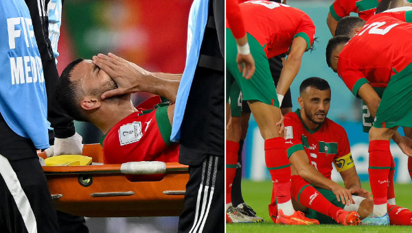 กัปตันทีมชาติโมร็อกโกน้ำตาคลอขณะที่ถูกหามลงเปลออกจากสนามขณะที่เหลือเวลาอีก 13 นาทีก่อนที่ชาติจากแอฟริกาเหนือจะเอาชนะแชมป์ยูโร 2016 1-0 เมื่อวันเสาร์
