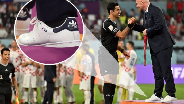 ในระหว่างมอบเหรียญให้กับ โครเอเชีย ที่คว้าอันดับ 3 ในการแข่งขันฟุตบอลโลกที่ กาตาร์ หลังชนะ โมร็อกโก 2-1 ทาง อินฟานติโน่ ที่สวมใส่ชุดสูทตามปกติ แต่รองเท้าที่ใส่กับเป็นผ้าใบของอาดิดาสสีขาวตัดกับสูทสีดำที่เจ้าตัวสวมอยู่