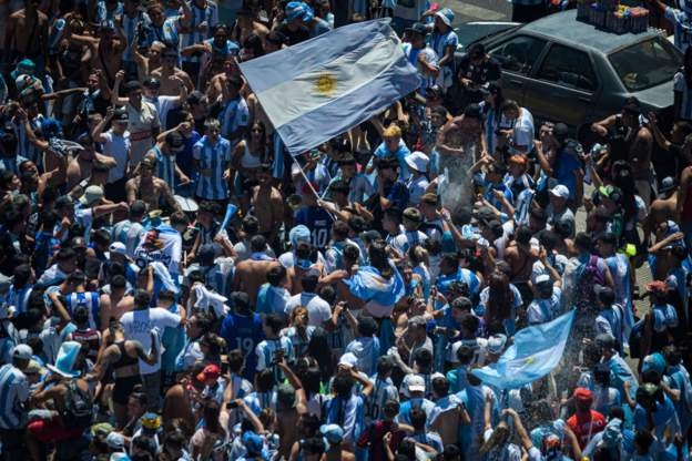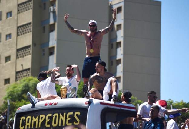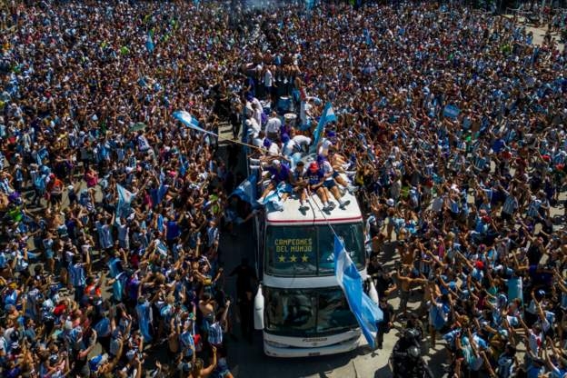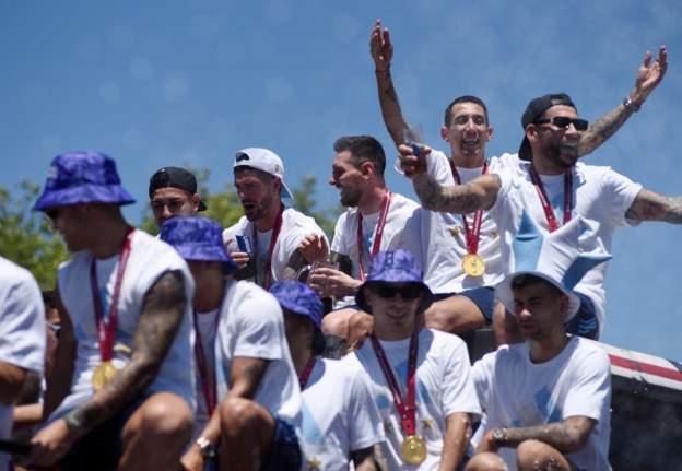 ประมวลภาพนักเตะทีมชาติอาร์เจนติน่าฉลองแชมป์ฟุตบอลโลกที่กรุงบัวโนส ไอเรส เมื่อวันอังคารที่ผ่านมา