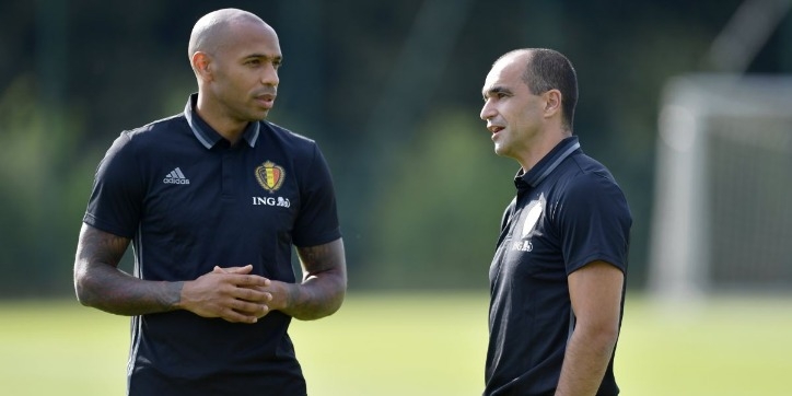 อองรี (ซ้าย) ช่วยงาน มาร์ตีเนซ (ขวา) กับทีมชาติ เบลเยียม
