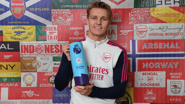 โอเดการ์ด ยังเป็นนักเตะ ‘ปืนใหญ่’ คนล่าสุดที่ได้รางวัลนักเตะยอดเยี่ยมประจำเดือนนับจาก ปิแอร์-เอเมอริค โอบาเมย็อง ก.ย. 2019
