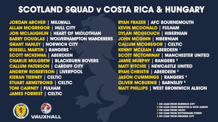 รายชื่อทีมชาติสกอตแลนด์ชุดอุ่นเครื่องสองนัดกับ คอสตาริกา และ ฮังการี