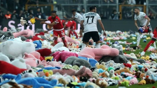 "แฟนๆ ได้โยนผ้าพันคอ หมวก และของเล่นตุ๊กตาต่างๆ เพื่อมอบให้เป็นของขวัญกับเด็กๆ ในพื้นที่ที่เกิดแผ่นดินไหว" แถลงการณ์ของสโมสร เบซิคตัส ระบุ