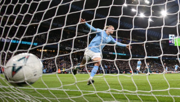 นาทีที่ 59 แมนฯ ซิตี้ ทิ้งเป็น 3-0 จนได้ ริยาด มาห์เรซ แทงบอลเข้าเขตโทษฝั่งซ้ายให้ ฟิล โฟเด้น ซัดไปชนเสาไกลเด้งเข้าทาง ฮาแลนด์ ยิงตุงตาข่ายเป็นแฮตทริกของตัวเขาเอง