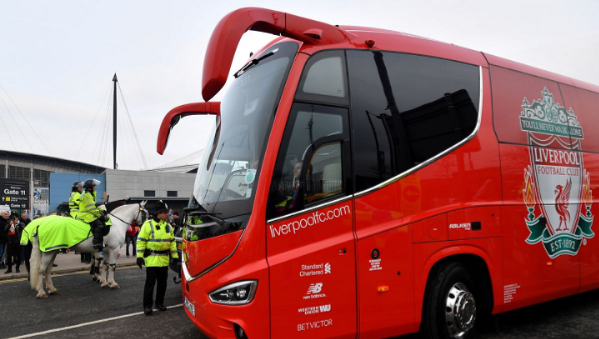"หลังจากการแข่งขันพรีเมียร์ลีกวันนี้ระหว่าง แมนเชสเตอร์ ซิตี้ และ ลิเวอร์พูล, GMP (ตำรวจเกรทเทอร์ แมนเชสเตอร์) ได้รับรายงานเกี่ยวกับความเสียหายต่อรถบัสของ ลิเวอร์พูล" ตำรวจ แถลง