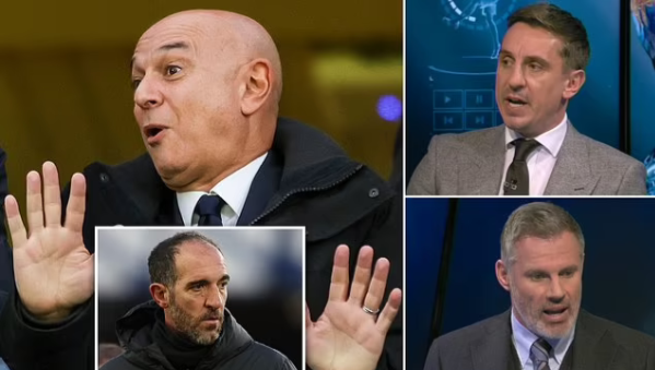 แกรี่ เนวิลล์ และ เจมี่ คาร์ราเกอร์ นักวิเคราะห์ สกาย สปอร์ตส์ ไม่เห็นด้วยกรณี แดเนี่ยล เลวี่ ปธ.สโมสร ท็อตแน่ม ฮอตสเปอร์ มอบโอกาสให้ คริสเตียน สเตลลินี่ กุนซือบารมีน้อยรักษาการไปจนสิ้นซีซั่นเพราะมือไม่ถึง แล้วการเลือกชอยส์นี้คงเพราะทีมอยากเลือกของถูกไว้ก่อน